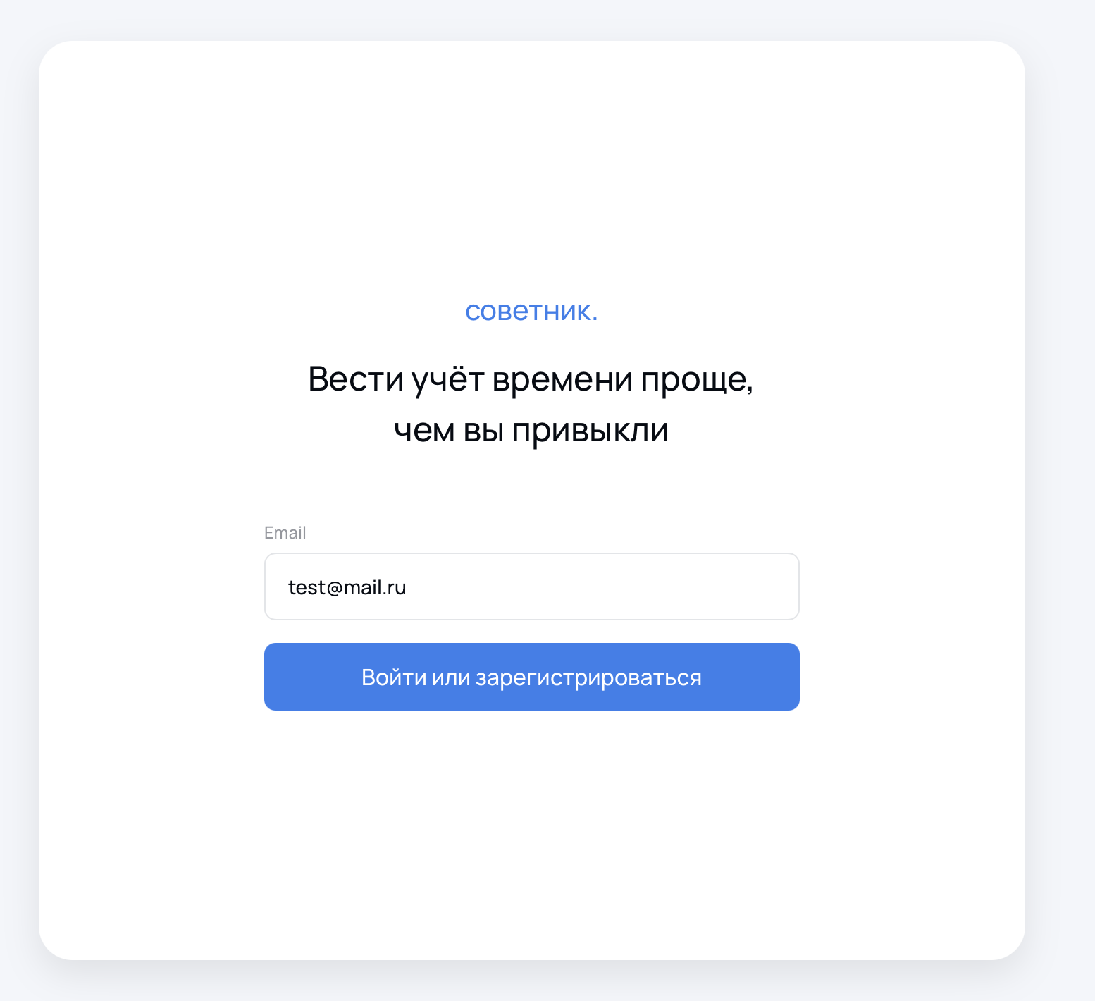 На главной странице нажмите кнопку "Войти" или перейдите сразу на страницу аутентификации https://sovetnik.app/auth